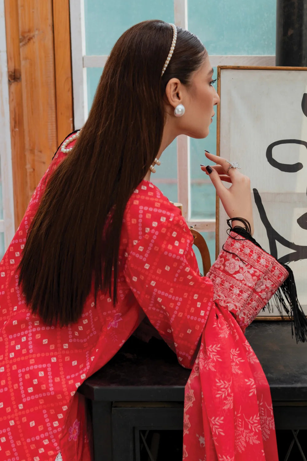 Shine in our Carmine Red 3-Piece Printed Lawn Suit. This ensemble showcases eye-catching prints on premium lawn fabric, a sumptuous silk dupatta, and elegantly embroidered patches, making it ideal for any special occasion.